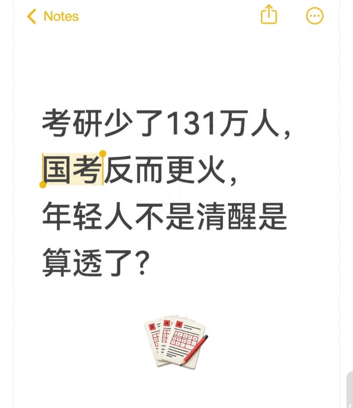 说到底,考研和国考的“此消彼长”,不是年轻人突然清醒了,而是他们变得更理性、更务实了。不再把“读研”当逃避就业的借口,也不再把“考公”当唯一的退路,而是根据自己的专业、家庭条件、职业规划,选最适合自己的路。